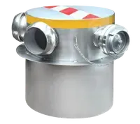 Die Schachteinlauftonne führt mehrere Leitungen horizontal in den Schacht, bremst den Strahl und leitet ihn drucklos nach unten ab. Gleichzeitig verschließt die SET den Schacht, sodass weder Personen noch Material hineinfallen kann.
